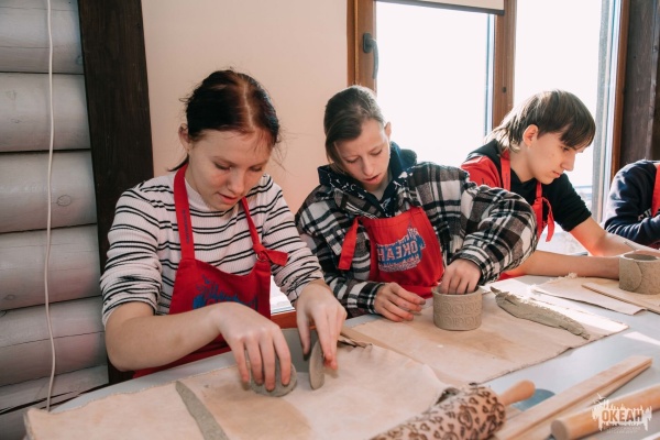 Занятия в гончарной мастерской детей из КГБОУ "Специальная (коррекционная) общеобразовательная школа-интернат VI вида"