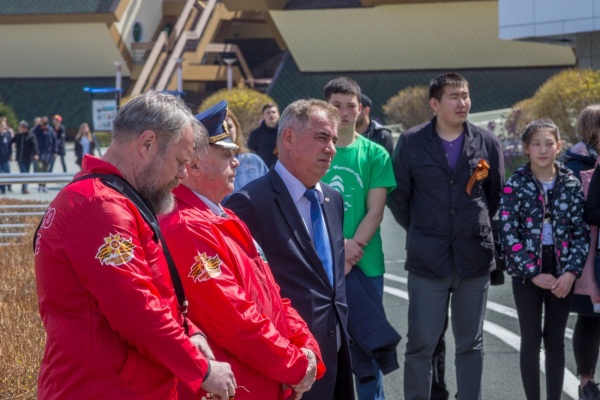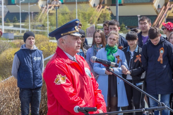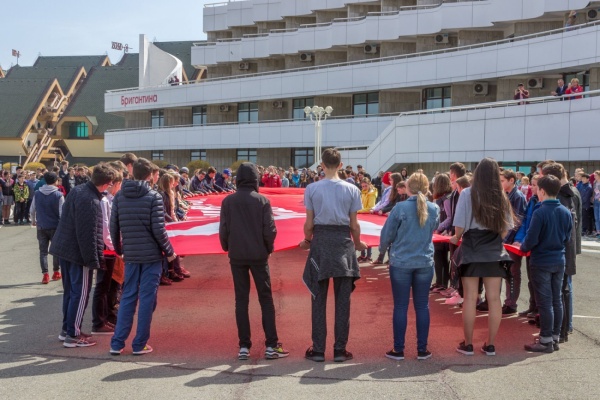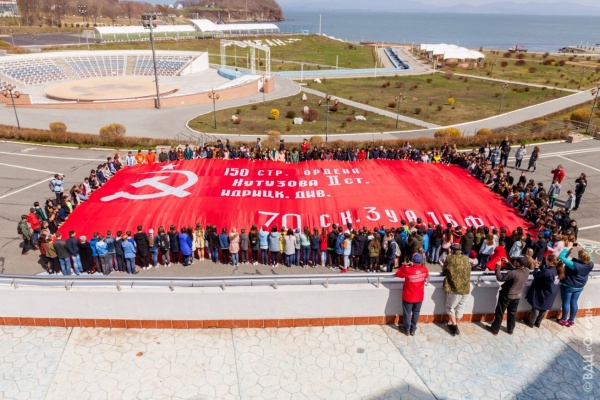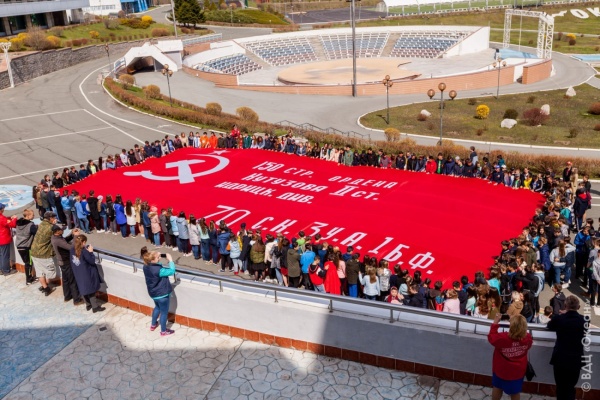 Церемония разворачивания копии Знамени Победы в честь 73-й годовщины победы в Великой Отечественной войне