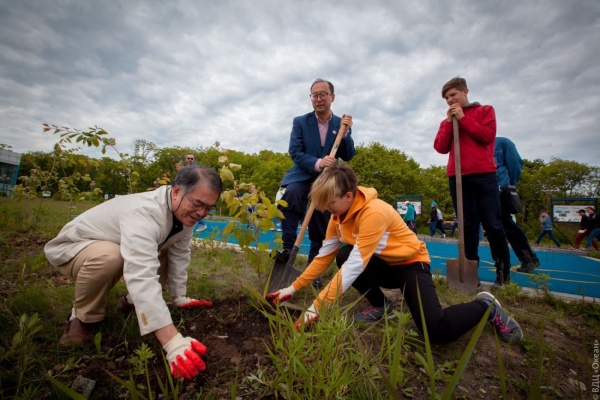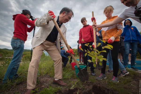 "Энергия старта": высадка деревьев на аллее вожатых (дружина "Тигрёнок")