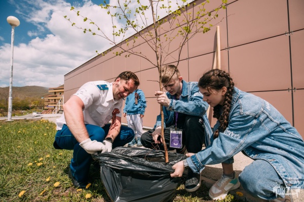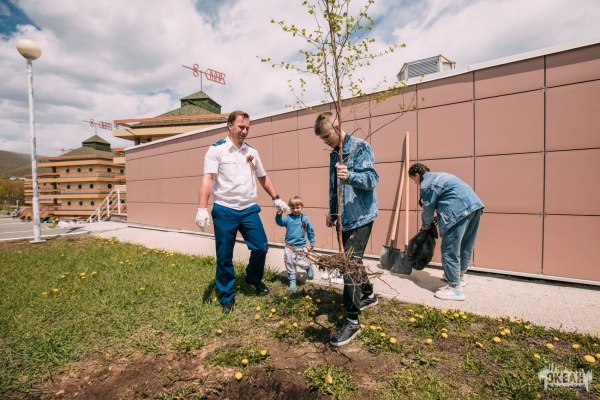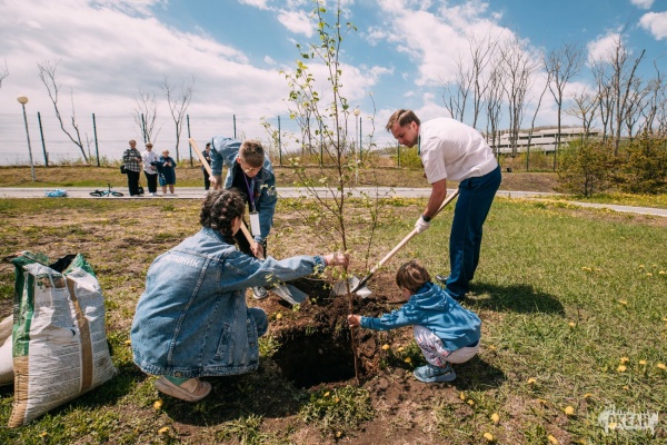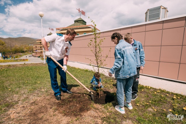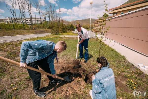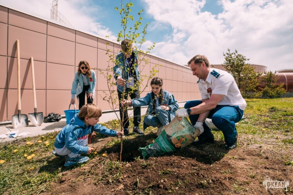 Прокурор Генеральной прокуратуры РФ сажает березу с детьми Паруса