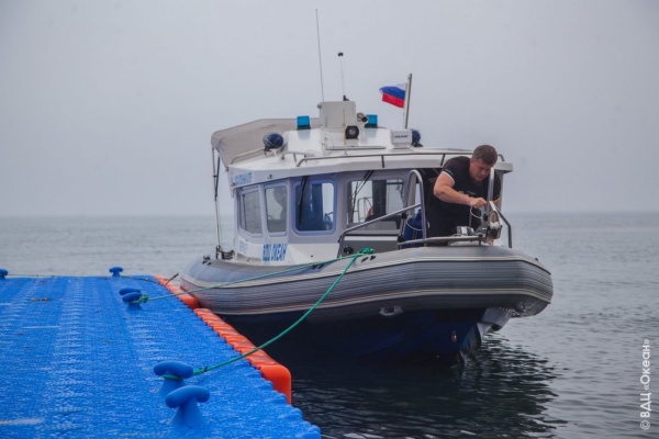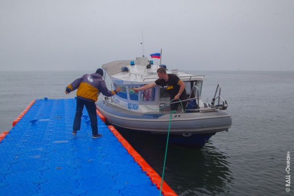 Прибытие спасательного катера ВДЦ «Океан» на понтонный пирс