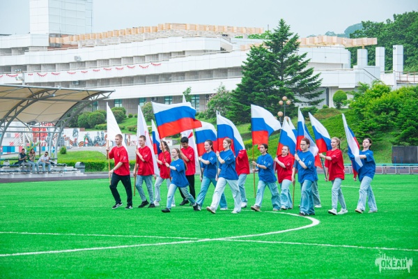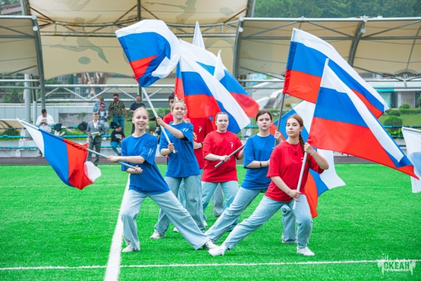 Линейка посвященная Дню России («Здоровое поколение», модуль «ГородОКеан», «Волонтеры финансового просвещения», «Школа игропрактиков», «Россия мастеровая», «#ВеликийМогучий», модуль «Отличники Первых», «Тихоокеанская школа безопасности», «Международный детский медиасаммит», «Туризм и гостеприимство», «Моя первая книга», «По морям вокруг Земли»)