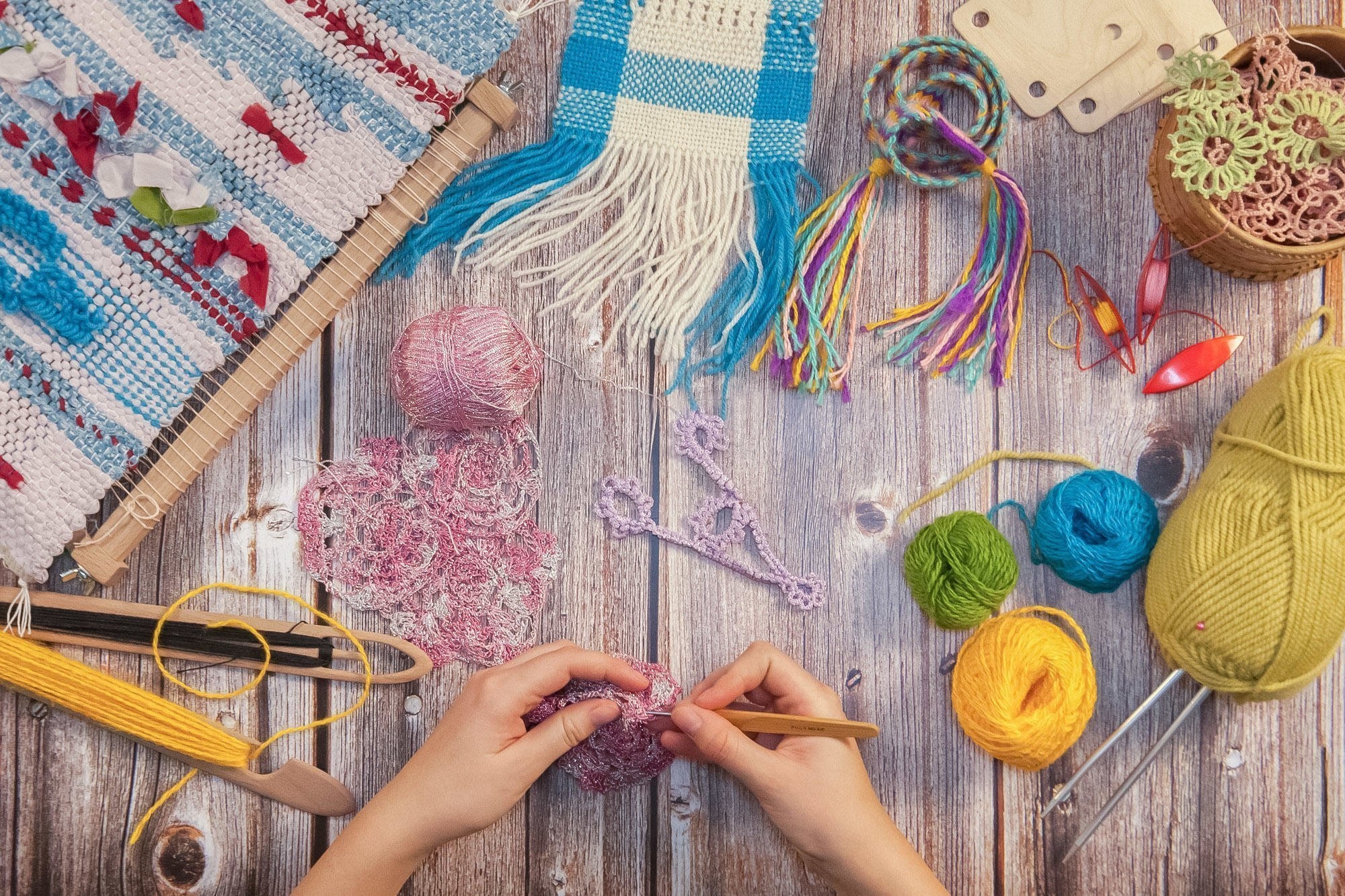 - работать за ткацким станком (в различных техниках);