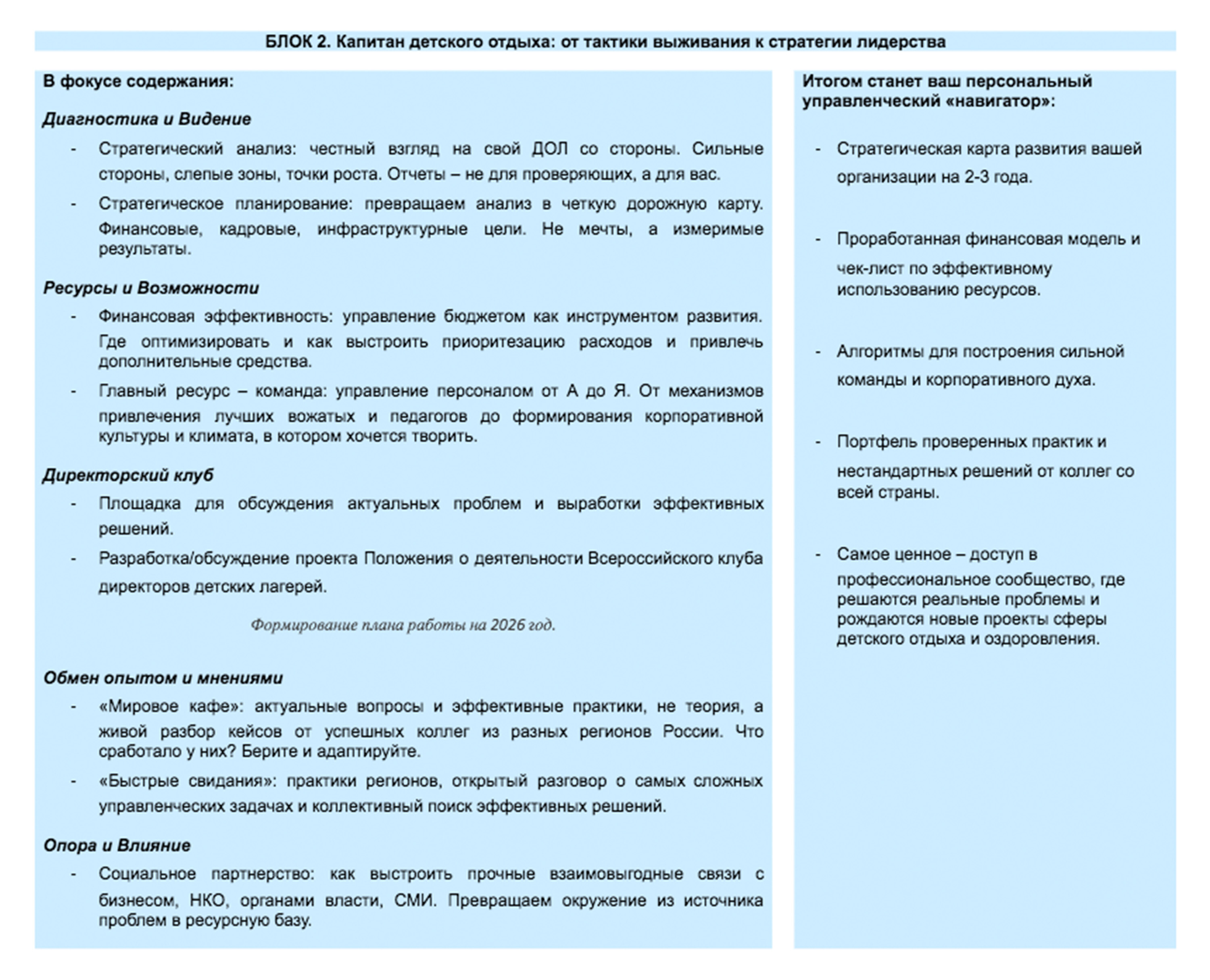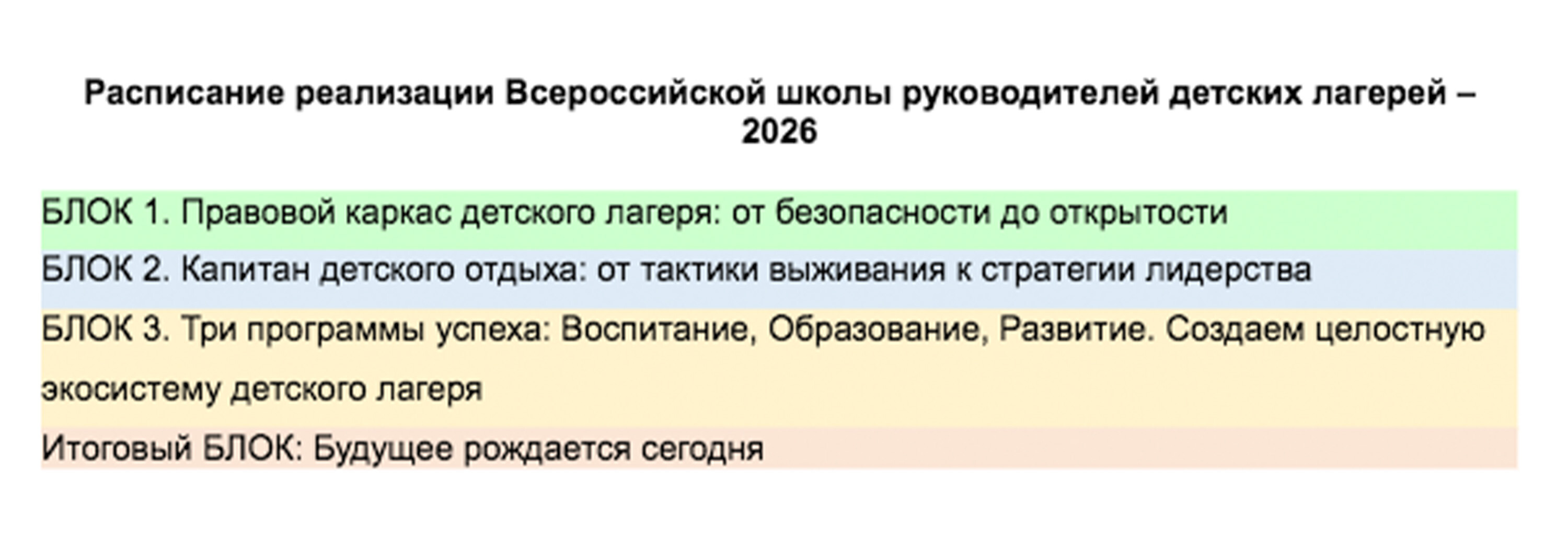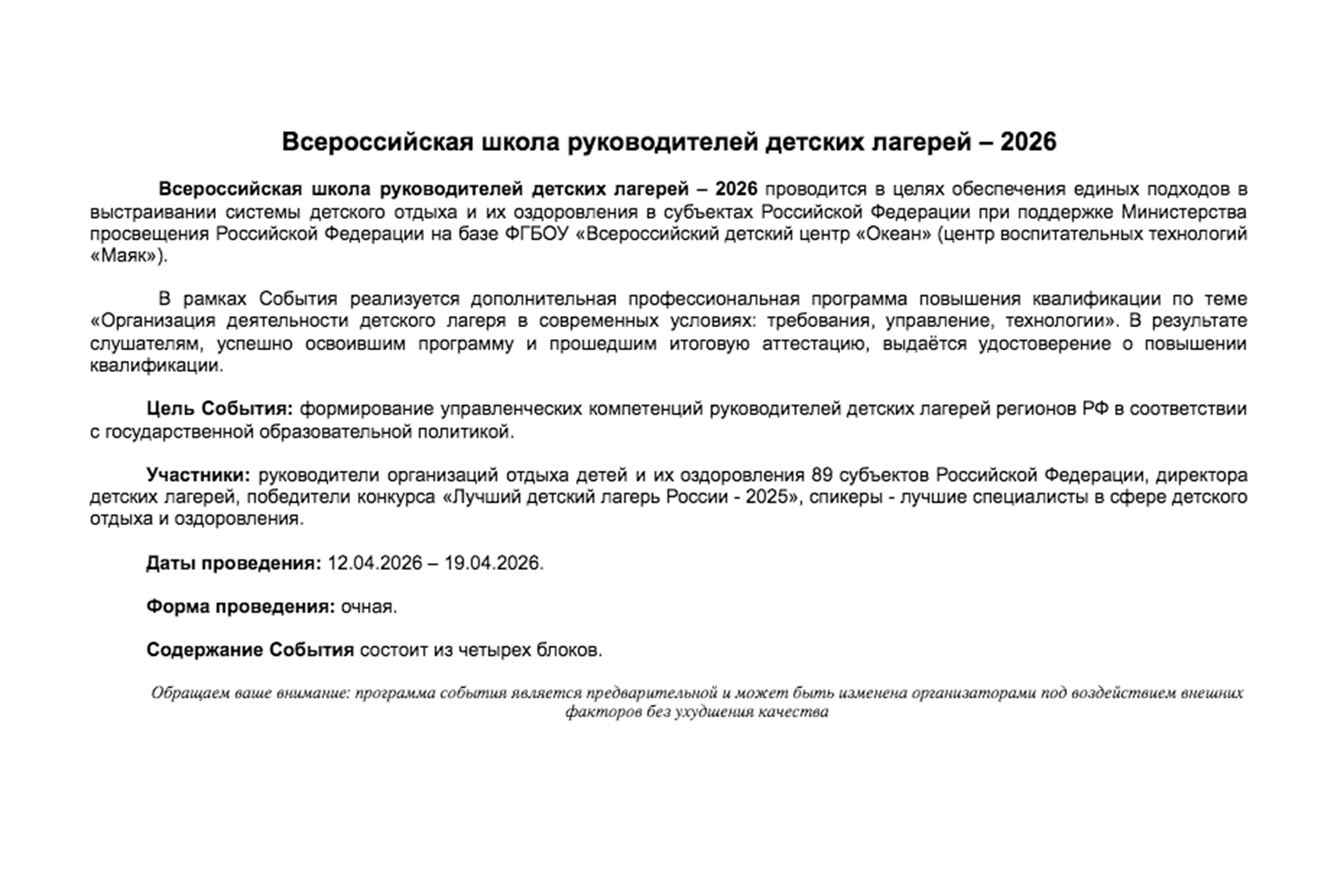Программа Всероссийской школы руководителей детских лагерей - 2026