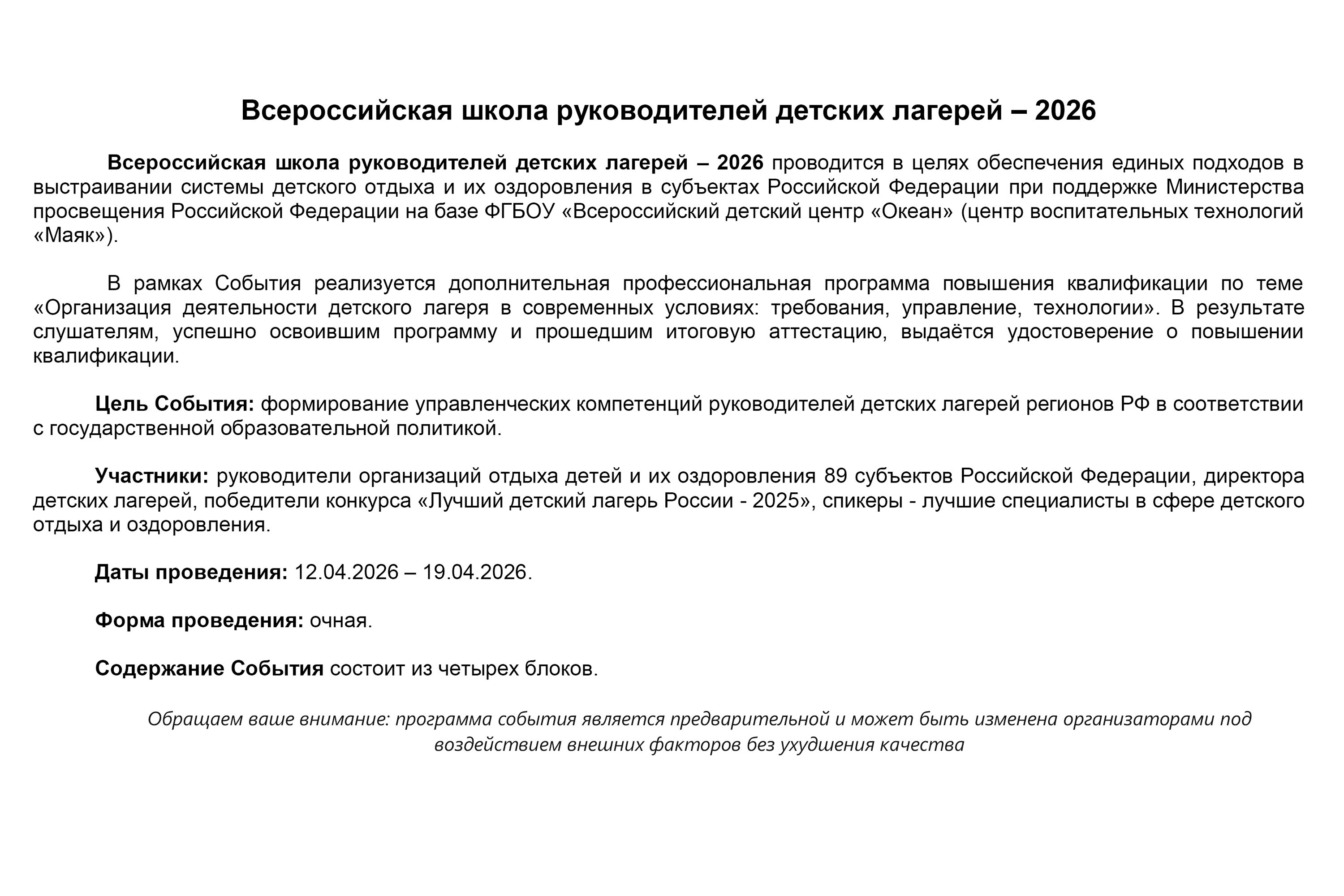 Школа руководителей ДОЛ