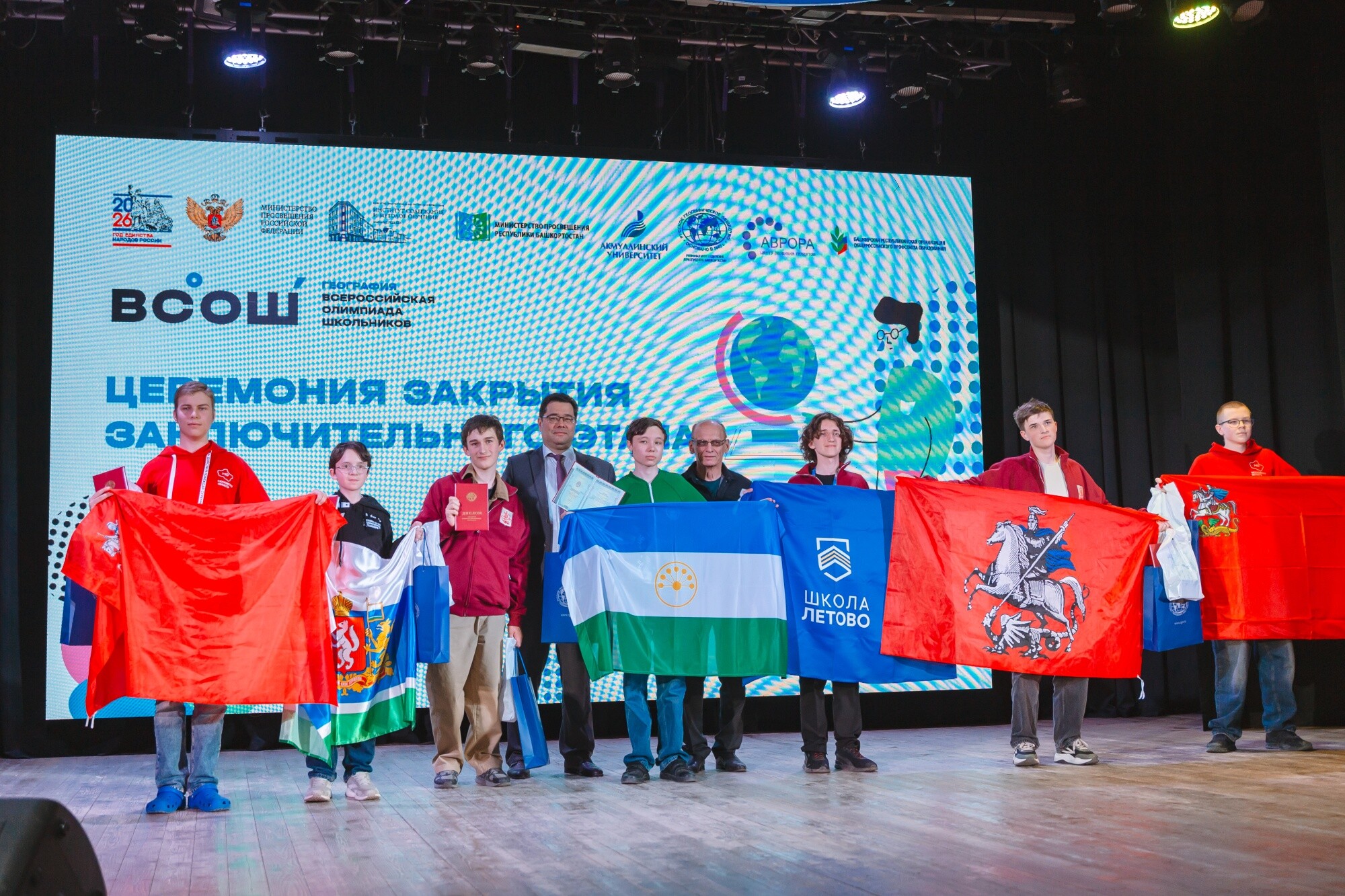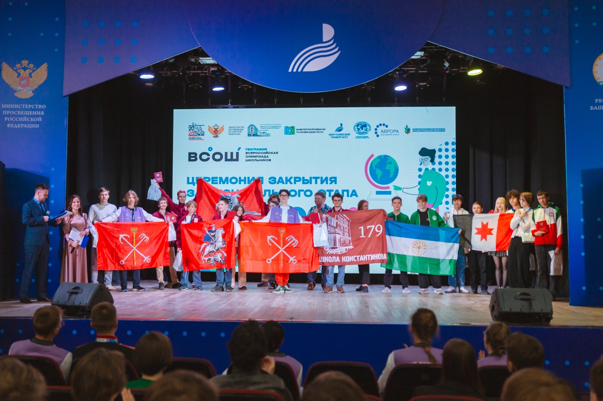 В торжественной церемонии закрытия олимпиады приняли участие министр просвещения Республики Башкортостан Ильдар Мавлетбердин, советник главы Республики Башкортостан по вопросам развития социальной политики Альбина Касимханова, депутат Государственного Собрания – Курултая Республики Башкортостан, председатель Башкирского отделения Русского географического общества, ректор Акмуллинского университета Салават Сагитов, члены жюри и представители партнеров олимпиады.
