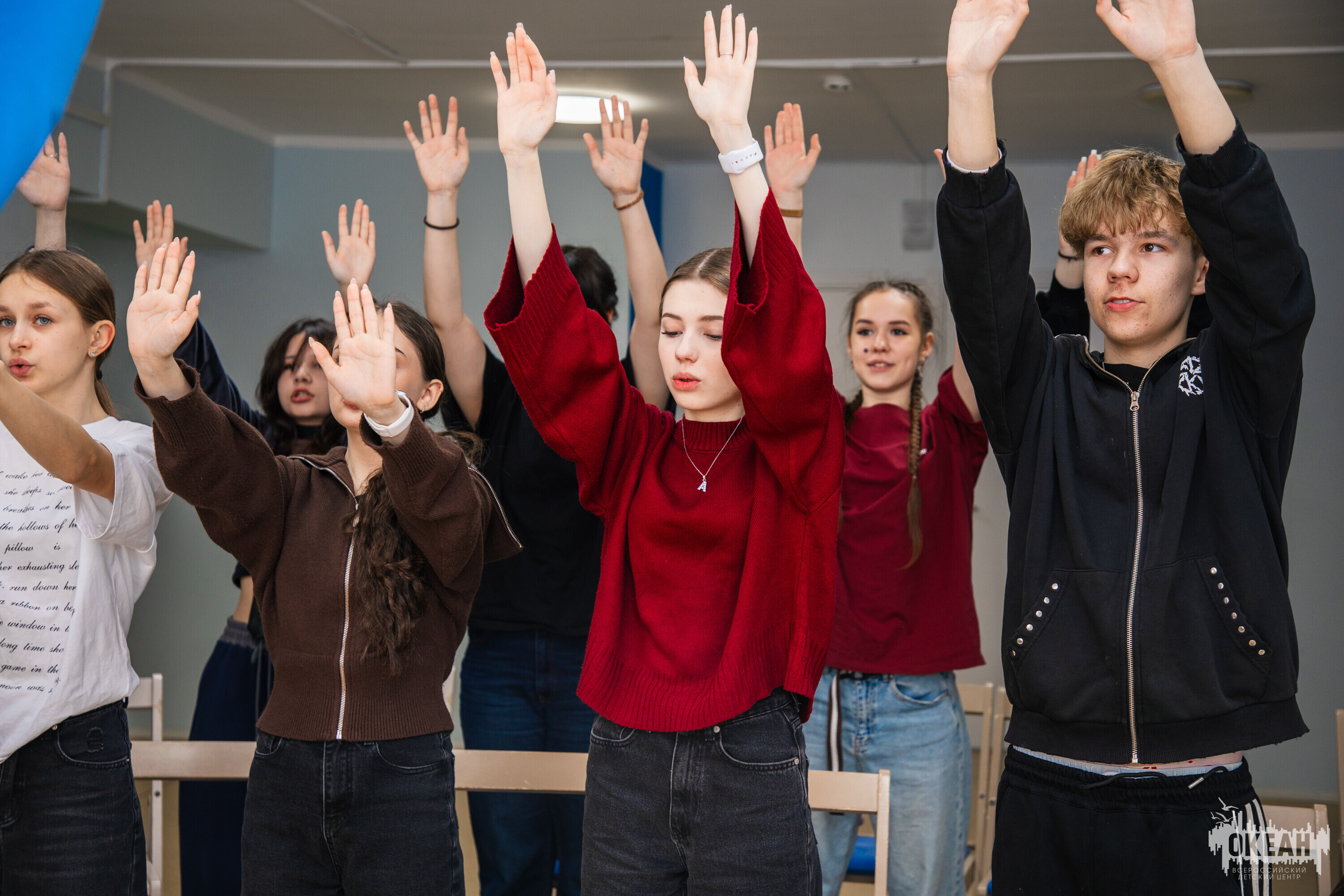 Участники театральной постановки не сидят сложа руки – они усердно готовятся к спектаклю в киноконцертном зале под чутким руководством педагогов. Тем временем в коридорах дружины «Бригантина» звучит пение океанцев, выбравших направление «Хоровое пение».