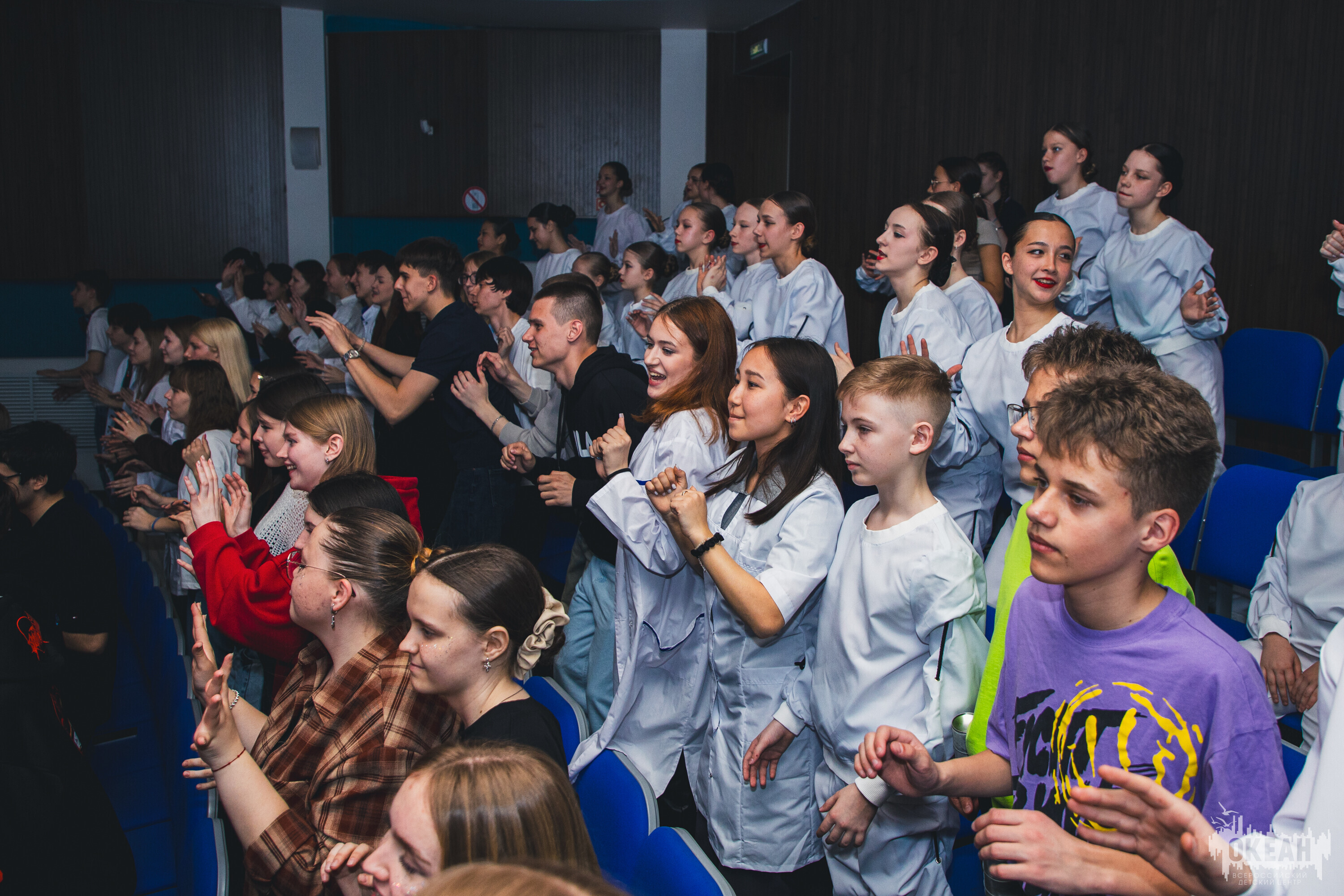 Мероприятие мгновенно наполнило ребят яркими эмоциями: вечер начался с активной игры на знакомство, где участники с азартом представили все 42 региона, прокричав свои имена на весь зал. Программа была невероятно насыщенной: ребята пели песни, разделившись на команды, разучивали знаменитые океанские песни, танцевали и собирали автографы у новых друзей.